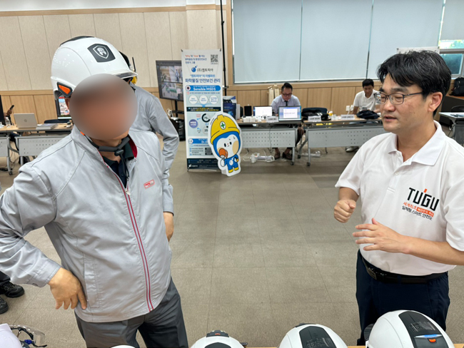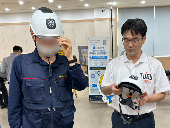 금호석유화학 울산공장 스마트안전장비 체험존에 TUGU 스마트 안전모가 부스(2025.07.28~29)를 마련하여
