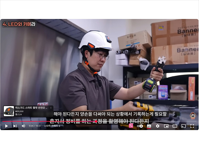 [유튜브 공구왕황부장 채널에 소개된 스마트안전모 TUGU 소개 영상]
