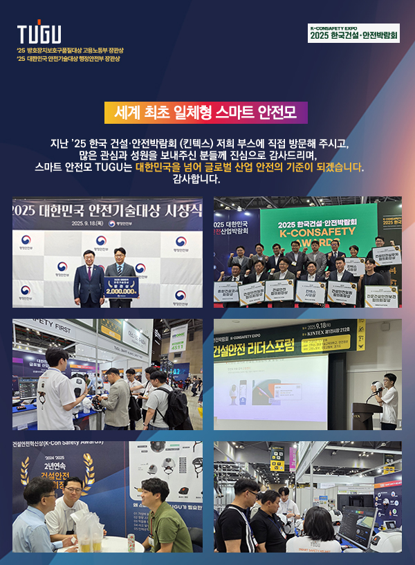스마트 안전모 TUGU와 다양한 안전 솔루션을 선보였습니다.