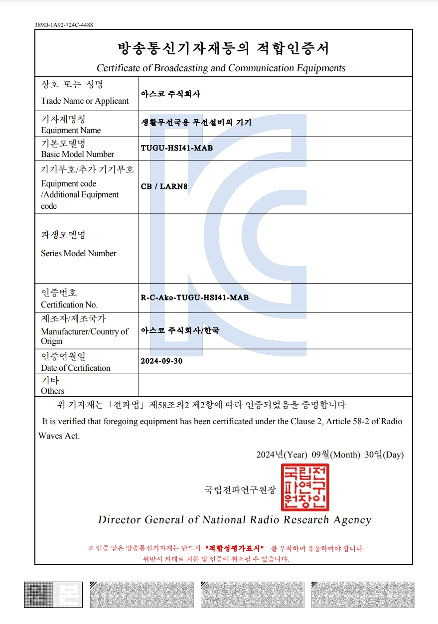 Certificate of Broadcasting and Communication Equipments (EMC)