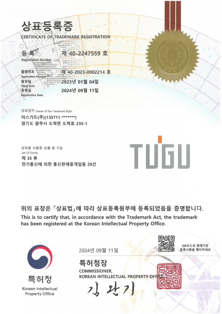 Certificado de registro de la marca TUGU_Servicio de seguridad industrial para i...